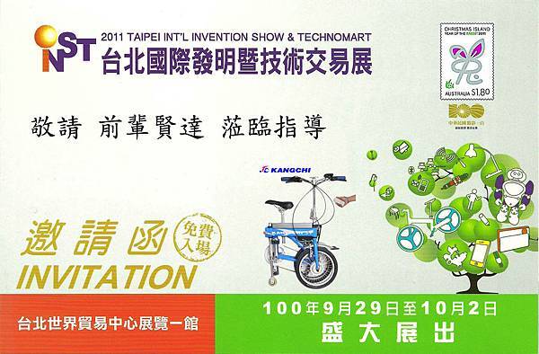 台北國際發明暨技術交易展(2011)年9月29日至10月2日http://www.inventaipei.com.tw/zh_TW/index.html